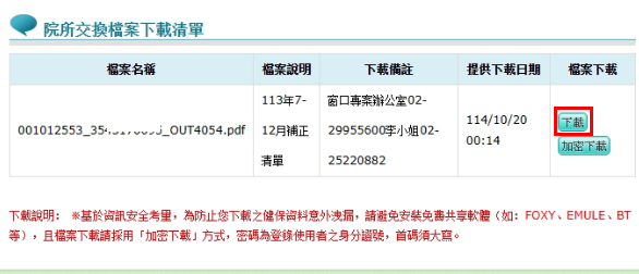 由「健保資訊網服務系統(VPN)」下載電子補正清單畫面: