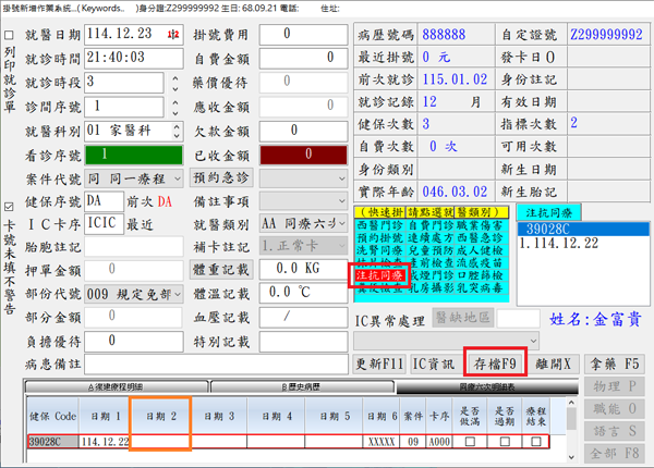 掛號作業:執行『IC掛號』依照正常看診流程掛入即可。