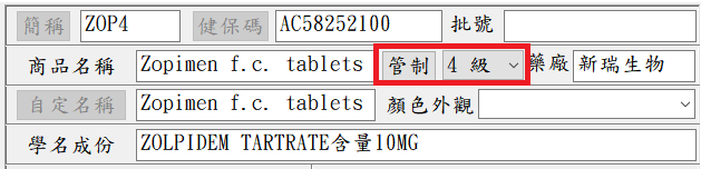 系統『4級』管制藥單預設不列印(按鍵呈灰階),院所可依需求自行調整參數設定,如下說明