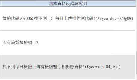 此訊息指該個案IC上傳部分檢驗醫令代碼沒有