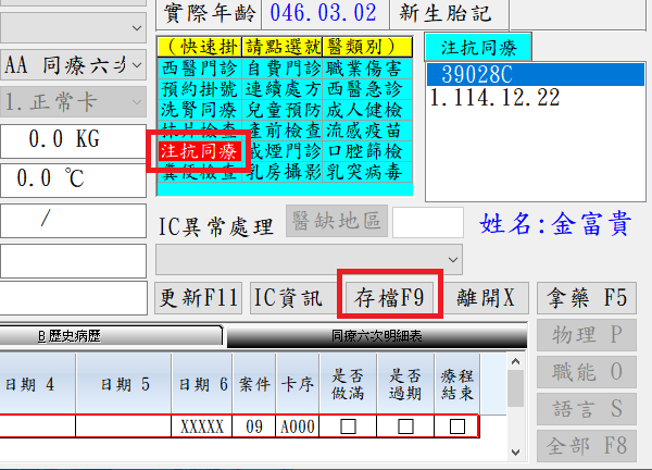 掛號作業:執行『IC掛號』點選「注抗同療」再按下「存檔」即可。