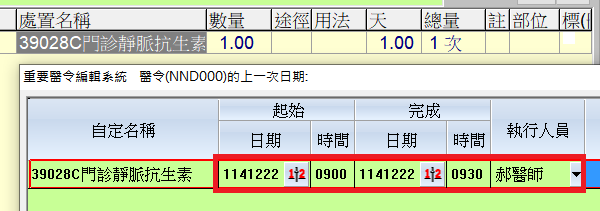*醫令代碼 39027C-39030C 需輸入執行起迄時間及執行人員