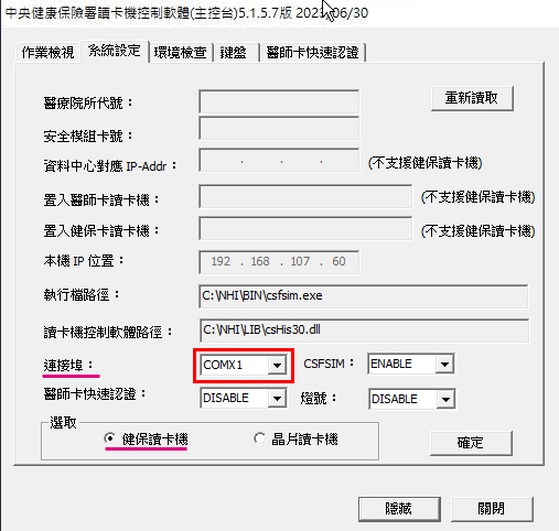 院所若使用健保專屬讀卡機環境,雲端主控台系統設定COM埠務必與之對應!