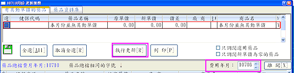 請用戶仍需點選「執行更新」完成當月藥價更新記錄!