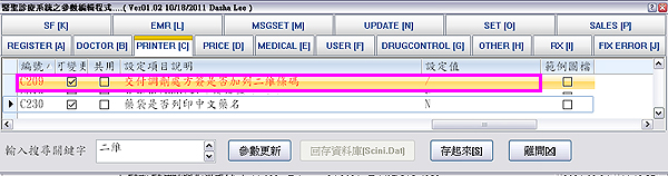 按下ENTER鍵跳至該編號列上,將「交付調劑處方簽是否加列二維條碼」