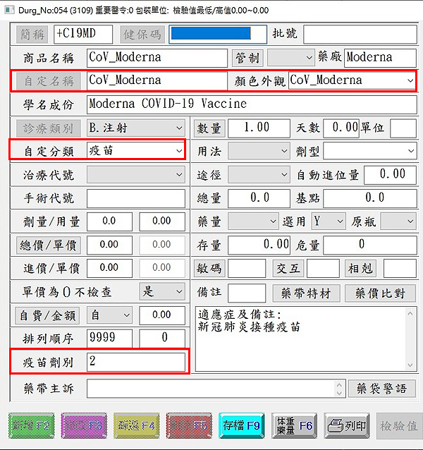 ● 『顏色外觀』:因應疫苗代碼字元擴增,此欄位務必鍵入公告檔相同「疫苗代碼」如:『CoV_AZ』
