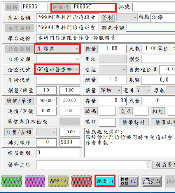 (1)『簡稱』自定,於『健保碼』輸入「P6606C」或「P6607C」後按下『Enter』鍵帶出預設資料
