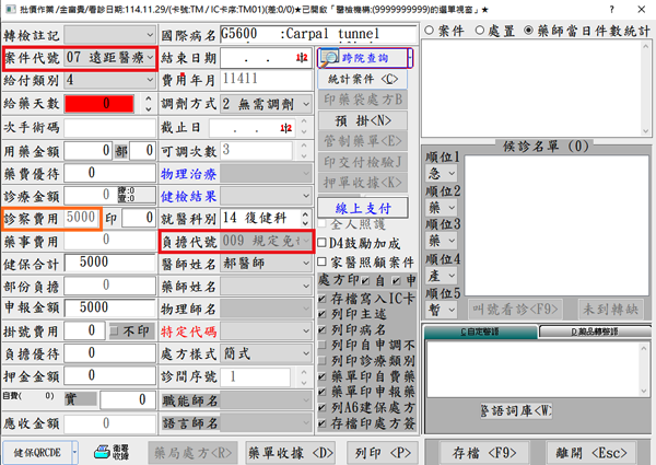*TMP01:提供遠距會診*系統會預設自動帶入