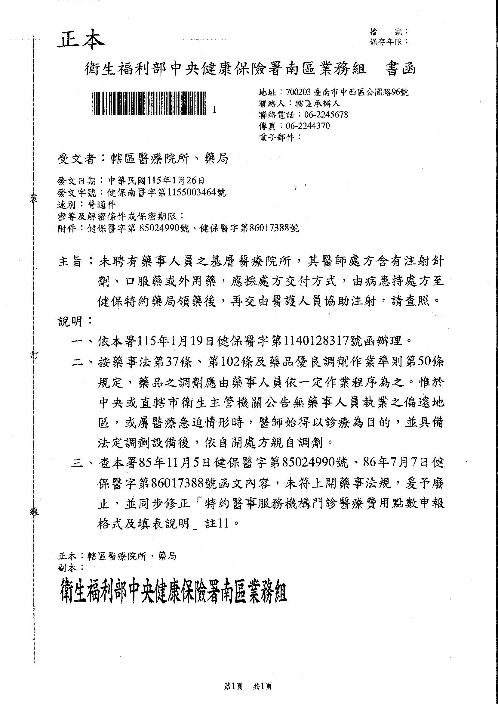 未聘有藥事人員之基層醫療院所,其醫師處方含有注射針劑、口服藥或外用藥,應採處方交付方式